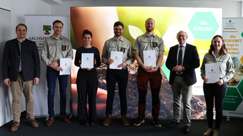 Eine Person schloss das duale Studium „Forstwirtschaft und Ökosystemmanagement" zum Forstoberinspektor erfolgreich ab, vier weitere absolvierten die Laufbahnausbildung zum Forst- bzw. Landwirtschaftsoberinspektor. Eine besondere Auszeichnung gebührt dabei Herrn Löffelmann: Mit der Note 1,1 hat er das Studium als Bester aller Jahrgänge abgeschlossen – herzlichen Glückwunsch zu dieser herausragenden Leistung!