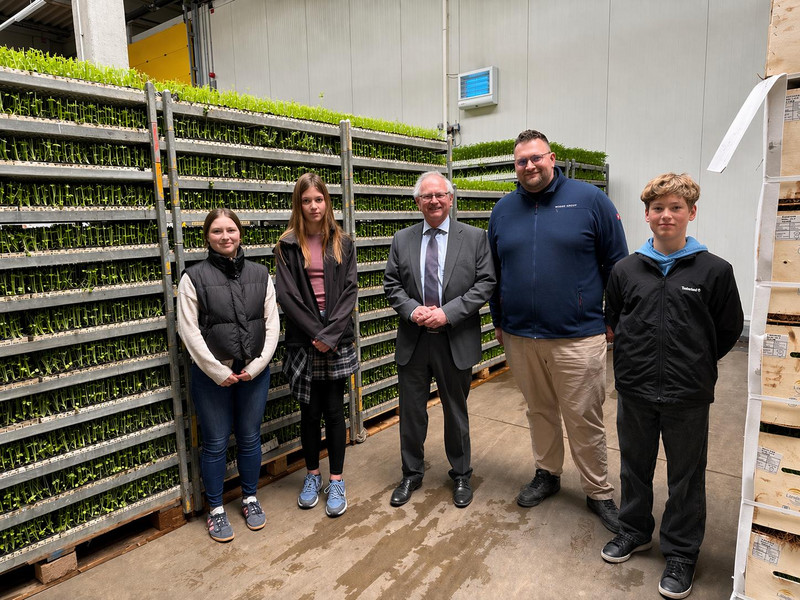 Besonders spannend war die Exkursion mit Staatssekretär Gert Zender in den Bördegarten Arensdorf, wo sie hautnah erleben konnten, wie landwirtschaftliche Produktion funktioniert und wie nachhaltig sowie innovativ gewirtschaftet wird. Der Bördegarten beliefert den regionalen Lebensmitteleinzelhandel mit frischem Gemüse und Obst und bildet unter anderem Fachkräfte für Agrarservice und Tierwirte in der Fachrichtung Geflügel aus.